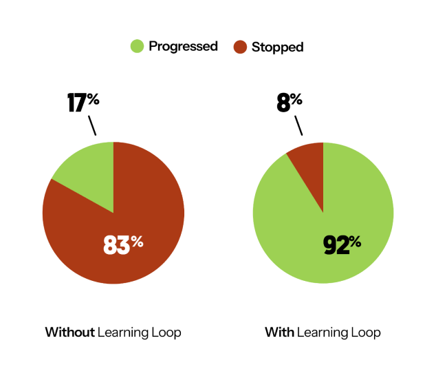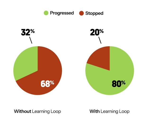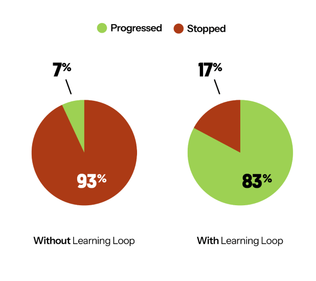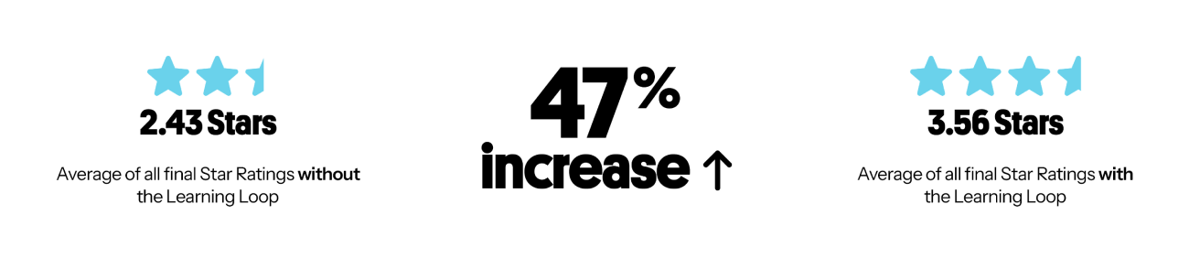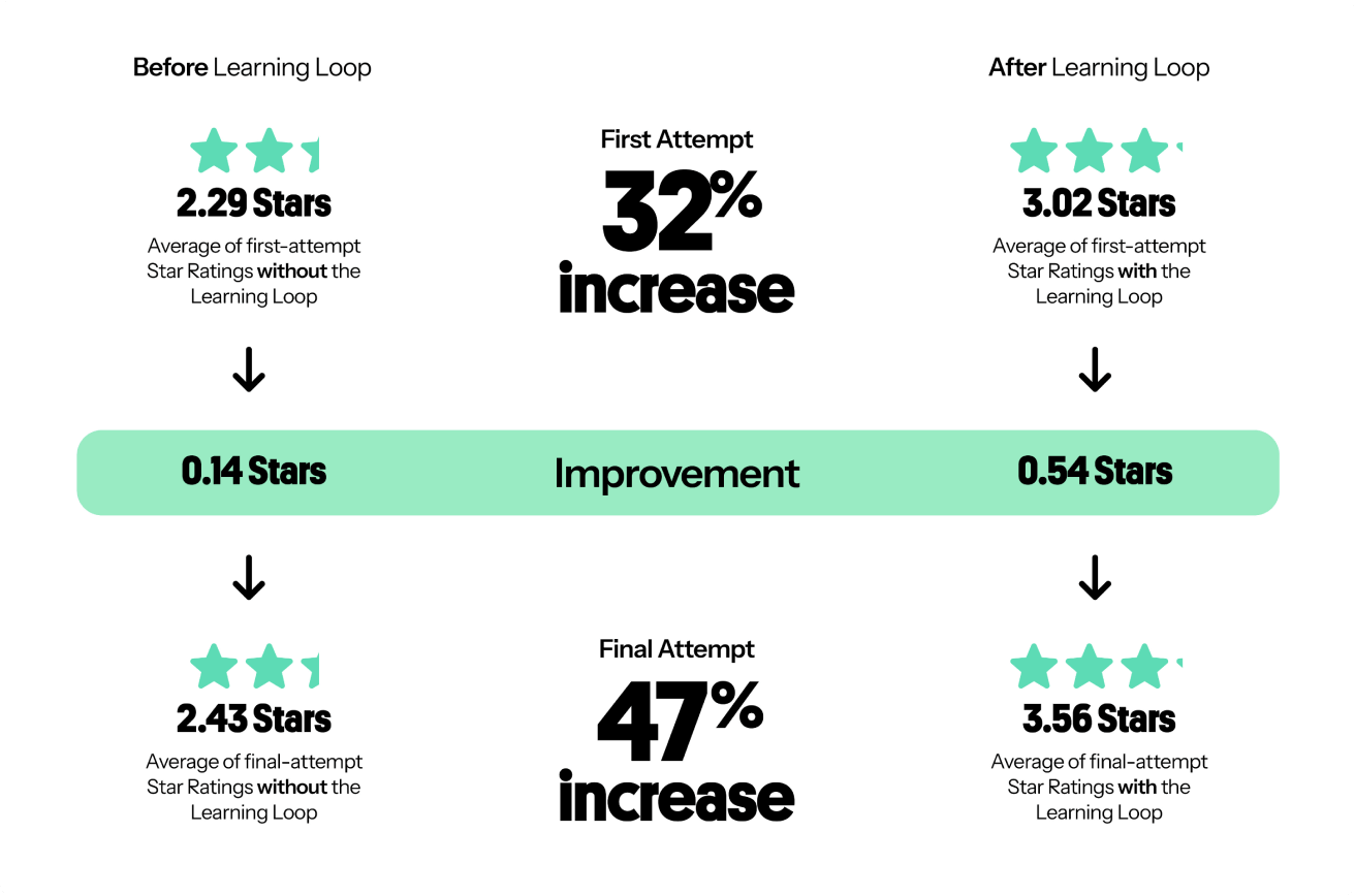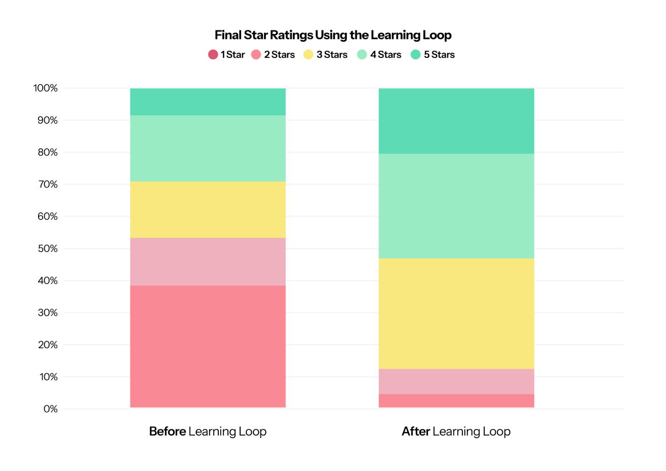 1-star and 2-star final attempts dropped from 52% before the Learning Loop to just 13% after the Learning Loop