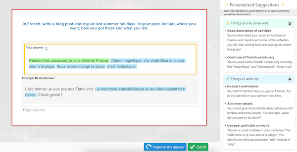 - AI feedback on extended written responses to support students to develop their writing and comprehension skills