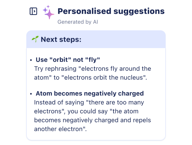 Our Learning Loop feature requires students to meet a minimum standard of understanding before progressing, a process that has been shown to boost engagement and improve the quality of student responses.