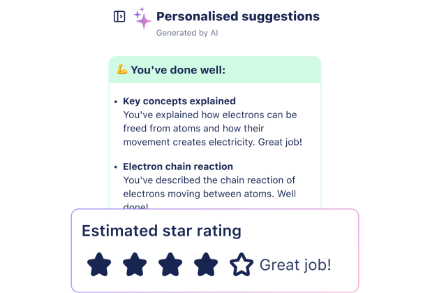With each iteration, students are given an AI-generated star rating based on the quality of their response, which is assessed by comparing their work to model answers and explanations crafted by educators.