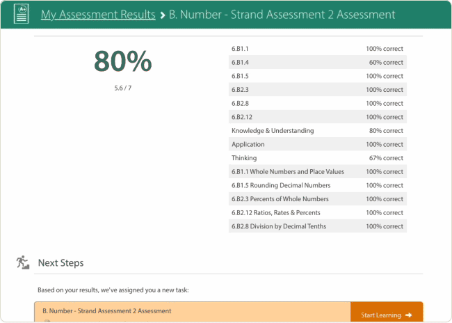 Our EQAO-style assessments instantly identify individual student knowledge gaps, provide supports to address misconceptions and enable teachers to quickly intervene with personalized gap closing to boost student outcomes.
