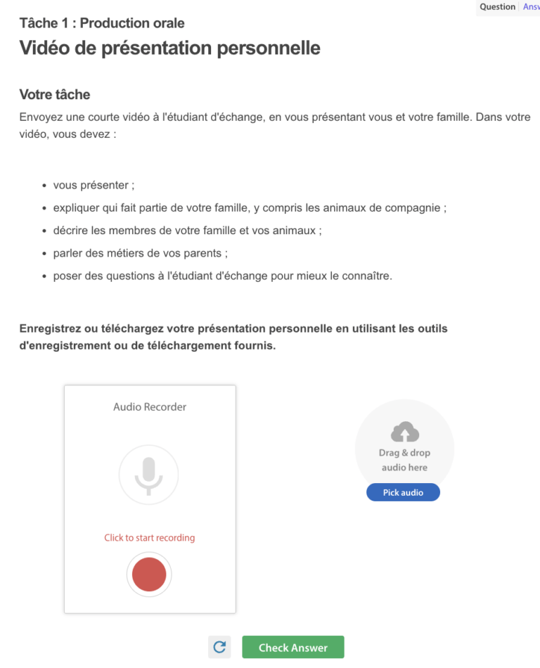 - Interactive lessons that enable students to record and compare pronunciation to native speakers